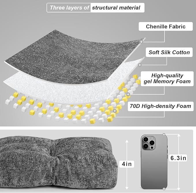 Bench Cushion 36 Inch - Luxury Chenille, High-Density Memory Foam, Non-Slip Bottom, Soft Durable Indoor Tufted Long Seat Cushion for Window Garden Furniture (Gray, 36x14x4 Inch)