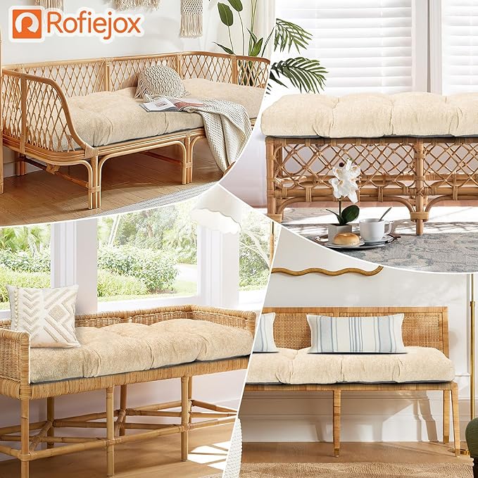 Bench Cushion 42 Inch - Luxury Chenille, High-Density Memory Foam, Non-Slip Bottom, Soft Durable Indoor Tufted Long Seat Cushion for Window Garden Furniture (Ivory, 42x16x4 Inch)