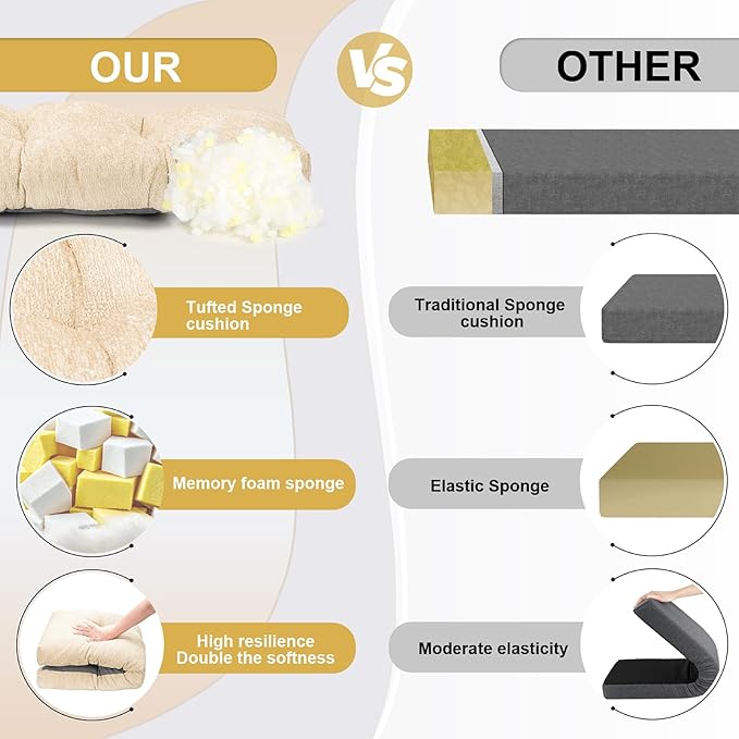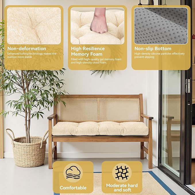 Bench Cushion 36 Inch - Luxury Chenille, High-Density Memory Foam, Non-Slip Bottom, Soft Durable Indoor Tufted Long Seat Cushion for Window Garden Furniture (Ivory, 36x14x4 Inch)