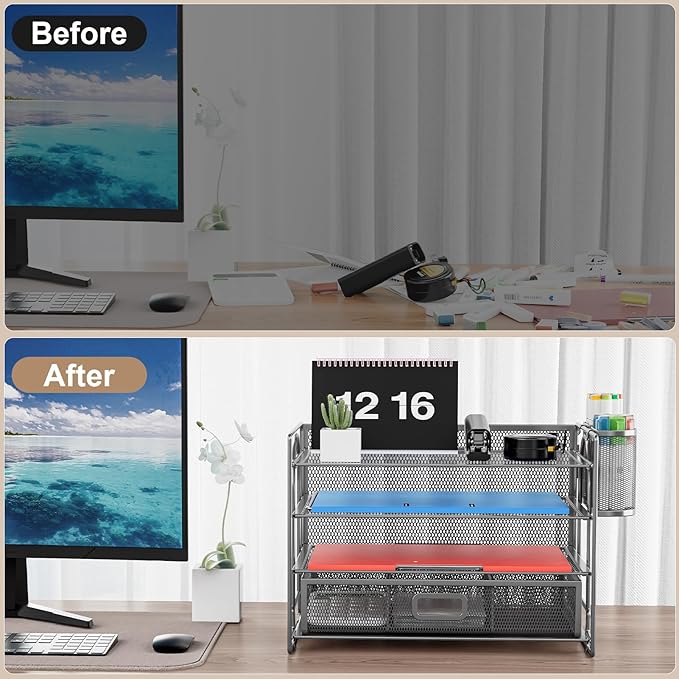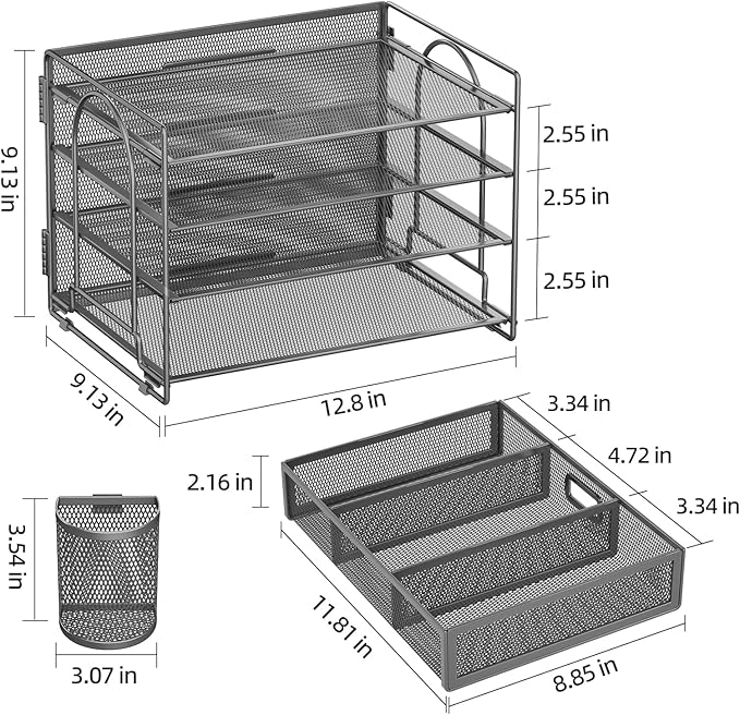 - 【High Quality】The mesh desk file organizer is made of lightweight durable metal mesh and reinforced with a solid steel frame that makes it have long-lasting strength and reliable performance