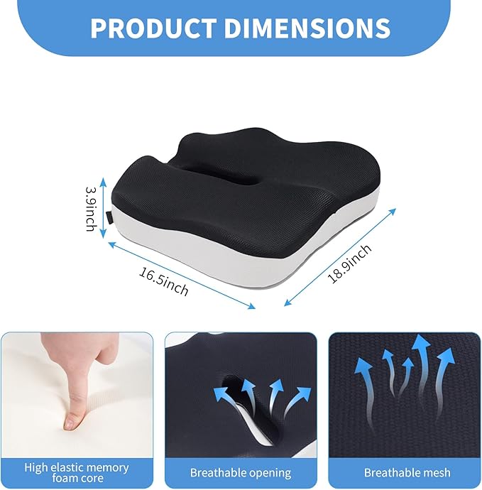 - 【Gift for Desk-Weary Loved Ones】: Surprise your workaholic spouse! Luxury gift boxing + "Take a Seat Break" reminder card – this sciatica pain relief pillow outshines generic chair cushions with pain-fighting superpowers.