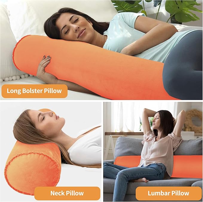 - MULTI-POSITION SUPPORT: This long cylindrical pillow is suitable for adult pregnant women, lying on their side, supine or prone, etc. It supports the back, buttocks, legs, and abdomen during pregnancy, relieving physical stress. It can also be placed on a bed or sofa to ensure that you sit comfortably and relax