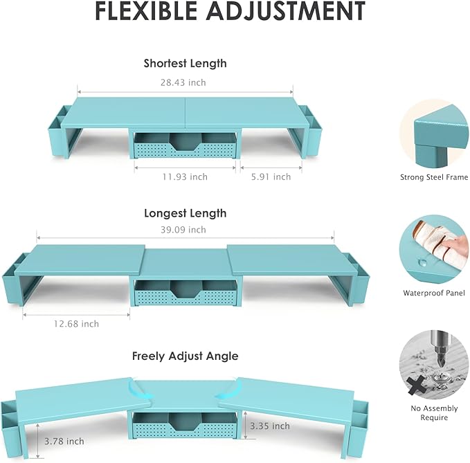 - 【Unlock Extra Space】Raise your monitor height with this monitor riser to free up space underneath. Store your keyboard, mouse, files, printer, gaming items, etc. neatly. Fits perfectly in any home, office, or dorm. Maximize desktop space and master desk organization