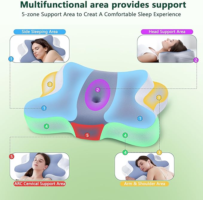 A-Pce JINXIA Cervical Pillows for Sleeping,Ergonomic Orthopedic Neck Support Pillow,Memory Foam Pillow with Removable Pillowcase for Side,Back, Stomach Sleepers, Blue