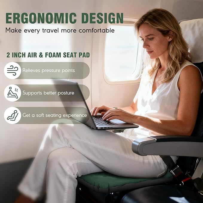 - ERGONOMIC SELF-INFLATING SEAT CUSHION - GDREAMT inflatable seat cushion reduces pressure points, supports better sitting posture. If your seat, back, waist or knees need extra padding, this inflatable cushion pad can provide soft and stable support. Whether used as a stadium seat, camping cushion, airplane seat cushion or travel cushion, or for long flights, or outdoor activities—multifunctional inflatable cushion is an easy way to elevate your camping or long trip comfort.