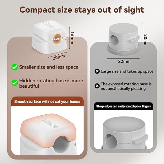 - 360° Rotation Design: Unlike traditional clips that only allow for one setup, our cord clips features a 360° rotating axis for greater reusability and flexibility. Base on the initial affixing position of the cord holder, all you have to do is rotate it to change the direction of the cable and keep it intact
