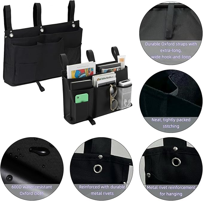 - Versatile Storage Solution: This multi-pocket bedside organizer is suitable for homes, dorms, offices, hospitals or baby stollers, keeping essentials like phones, books, glasses, earphones, electrical devices and baby supplies within easy reach