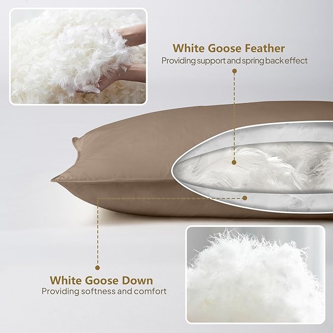 - Unmatched Premium Fill: Generously filled with a premium blend, this body pillow combines the cloud-like softness of 600 Fill Power white goose down with the resilient support of feathers. This optimal balance ensures exceptional loft that cradles you, without feeling overly firm