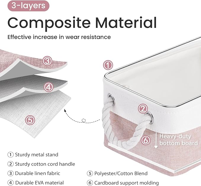 - Sturdy& Structured Design: Crafted with a sturdy EVA base and premium linen fabric, VQRTEXA's 1-pack storage baskets feature a built-in metal frame and reinforced bottom panel. This robust construction ensures strong support and lasting structure for everyday use