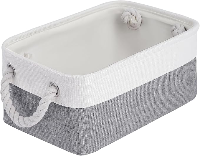 VQRTEXA Storage Baskets for Shelves 11.8x7.9x5.2 Inch, Foldable Fabric Storage Bins with Handles, Small Storage Baskets for Organizing Closet, Bathroom, Office, Home Organization (1-Pack, White&Gray)