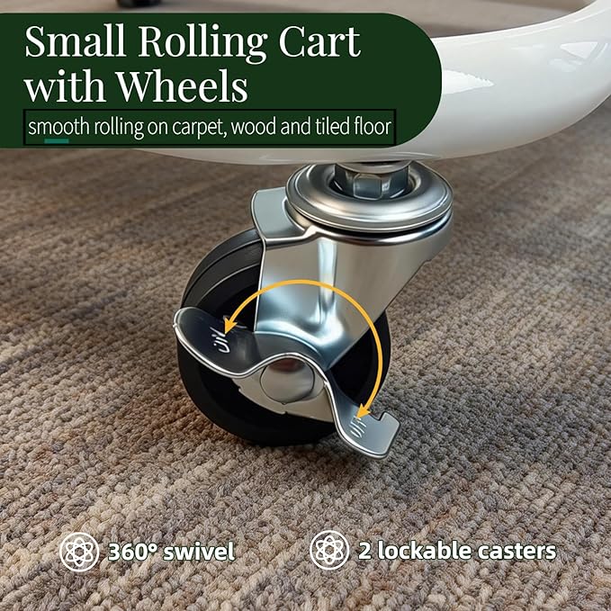 - 【Upgraded Wheels with 2 Lockavble Casters】This under table storage cart equipped with 360°swivel metal wheels(including 2 lockable), this mini cart moves effortlessly and stays securely in place when needed. The upgraded quiet-roll technology ensures silent movement on various surfaces, from hard floors to carpets