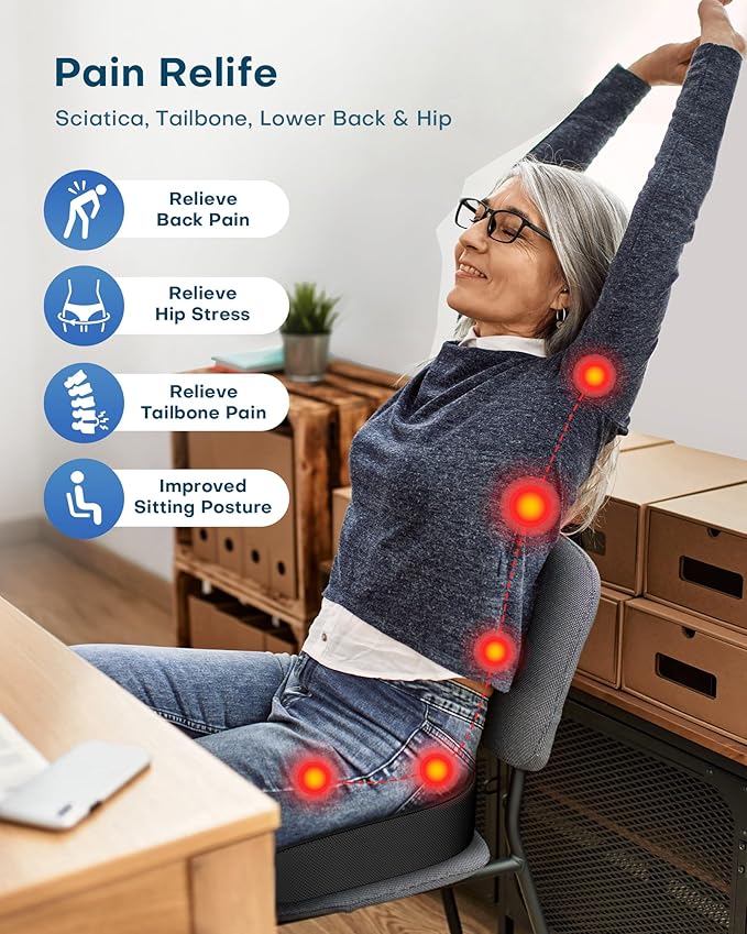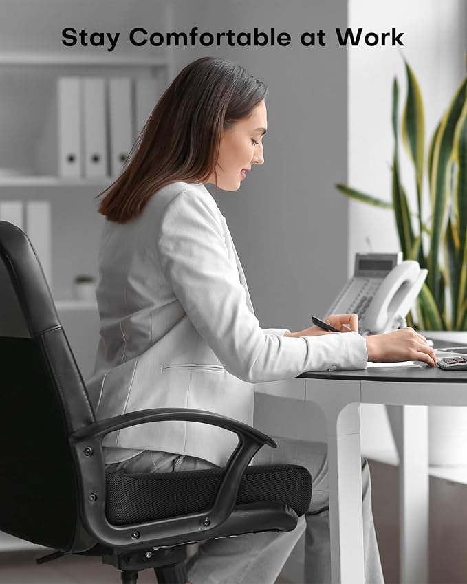 - Versatile for Everyday Use: Ideal for standard office chairs, car seats, dining chairs, and more, this portable cushion brings enhanced comfort wherever you sit. Its practical size makes it easy to move between different settings, supporting your well-being at work, home, or on the go.