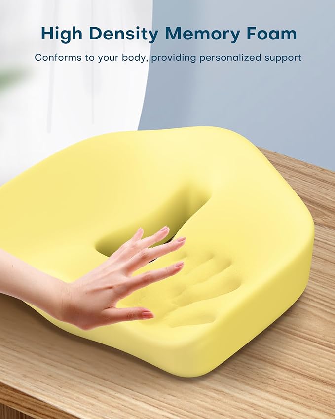 - Targeted Pressure Relief: Designed to enhance sitting comfort, this cushion helps alleviate discomfort in the tailbone, hips, and lower back. By minimizing pressure concentration, it supports a more relaxed sitting position, making long workdays or drives feel less strenuous on your body.