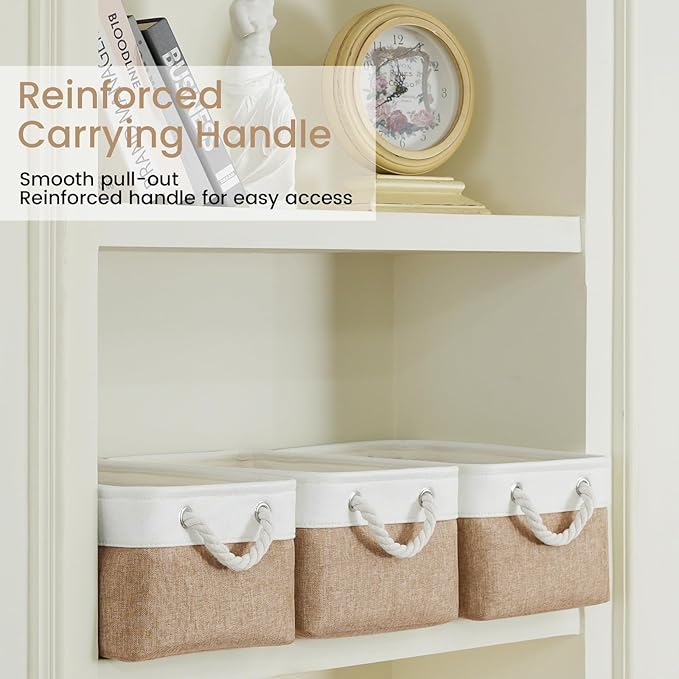 VQRTEXA Storage Baskets for Shelves 13.8x9.8x6.7 Inch, Foldable Fabric Storage Bins with Handles, Small Storage Baskets for Organizing Closet, Bathroom, Office, Home Organization (1-Pack, White&Khaki)
