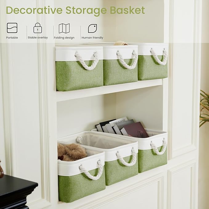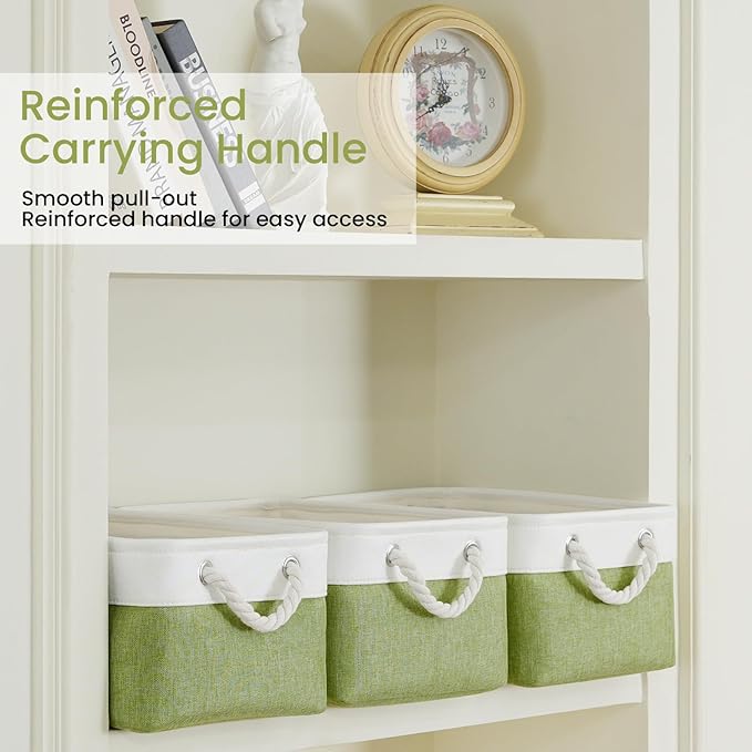 VQRTEXA Storage Baskets for Shelves 13.8x9.8x6.7 Inch, Foldable Fabric Storage Bins with Handles, Small Storage Baskets for Organizing Closet, Bathroom, Office, Home Organization (1-Pack, White&Green)