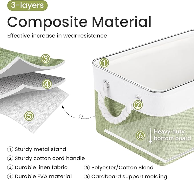 - Sturdy& Structured Design: Crafted with a sturdy EVA base and premium linen fabric, VQRTEXA's 1-pack storage baskets feature a built-in metal frame and reinforced bottom panel. This robust construction ensures strong support and lasting structure for everyday use
