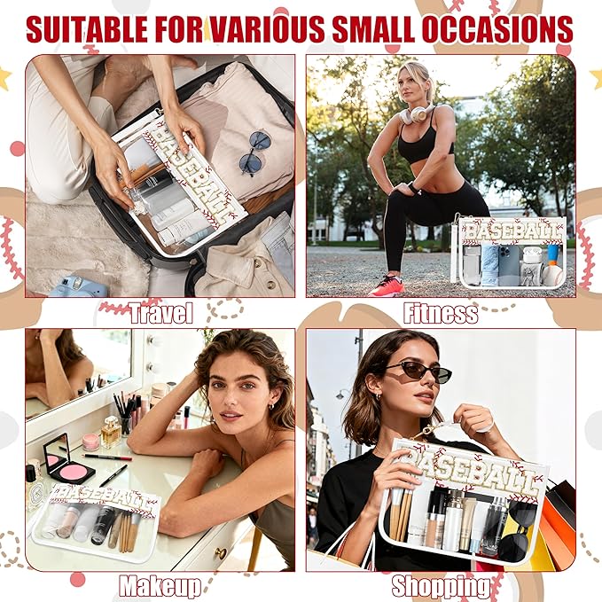 - STYLISH DESIGN: Clear PVC baseball makeup bag featuring varsity-style chenille letter patches, perfect for baseball enthusiasts with a preppy aesthetic appeal