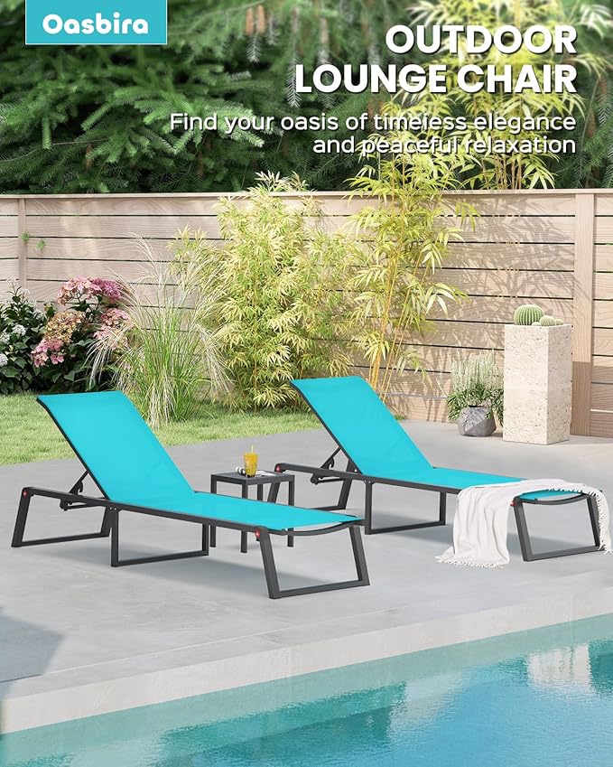 - [Foldable Design & Ultra-Lightweight] The Oasbira folding lounge chairs outdoor are crafted from premium aluminumis incredibly lightweight and highly portable, making it easy to carry on. It's the perfect patio lounge chair for the pool, beach, backyard, or anywhere you relax. For compact, space-saving storage, it folds completely flat in seconds and easily fit into the car trunk or a small storage space