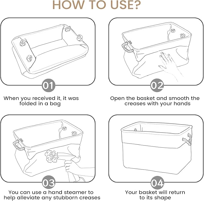- Integrated Handles for Easy Carrying: Sturdy fabric handles are built into both sides, offering a secure and comfortable grip. They make it easy to lift and move each basket, even when full, simplifying reorganization in any room