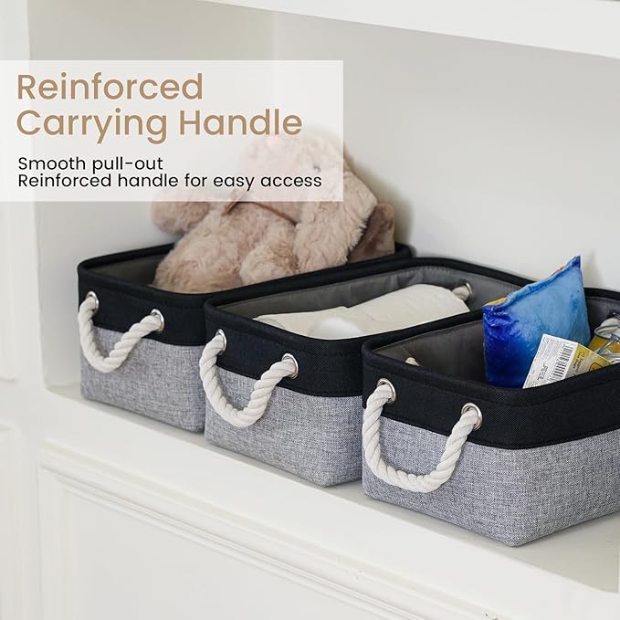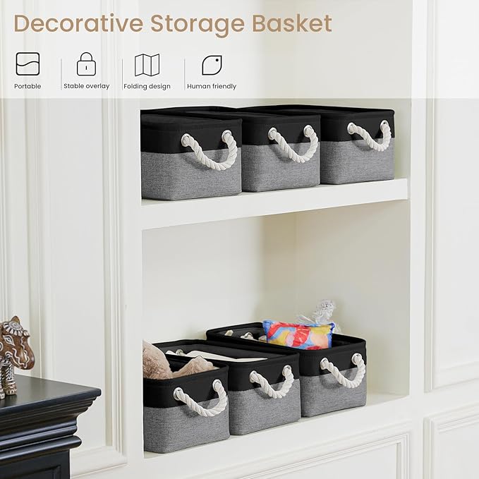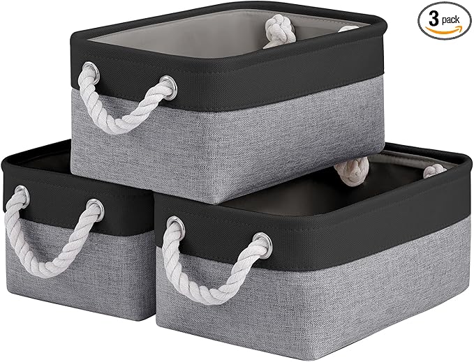VQRTEXA Storage Baskets for Shelves 11.8x7.9x5.2 Inch, Foldable Fabric Storage Bins with Handles, Small Storage Baskets for Organizing Closet, Bathroom, Office, Home Organization (3-Pack, Black&Gray)