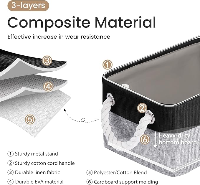- Sturdy& Structured Design: Crafted with a sturdy EVA base and premium linen fabric, VQRTEXA's 3-pack storage baskets feature a built-in metal frame and reinforced bottom panel. This robust construction ensures strong support and lasting structure for everyday use