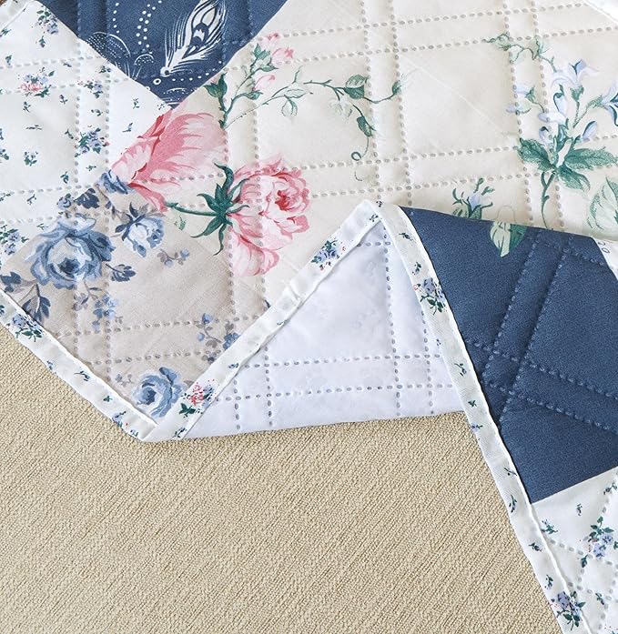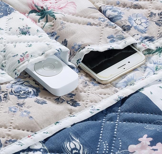 - ORGANIZER WITH UNIQUE DESIGN: Pink and blue roses in traditional free shape patchwork, double diamond quilting, serene, timeless and unique. Keep your accessories organized and protect your couch armrest against mess. Pets friendly. Made to enhance decor.