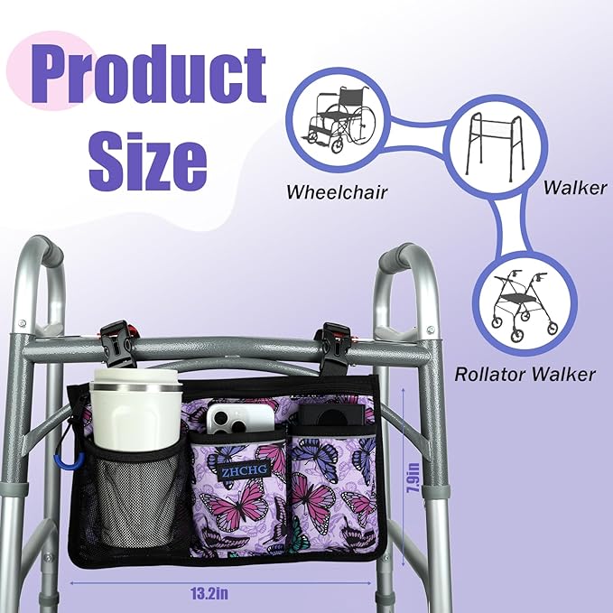 Wheelchair Side Bag, Wheelchair Armrest Pouch Accessories with Cup Holder, Storage Bag for Walker, Rollator, Electric Scooter Wheelchairs, Ideal Gift for Mother's Day & Father's Day (Purple)