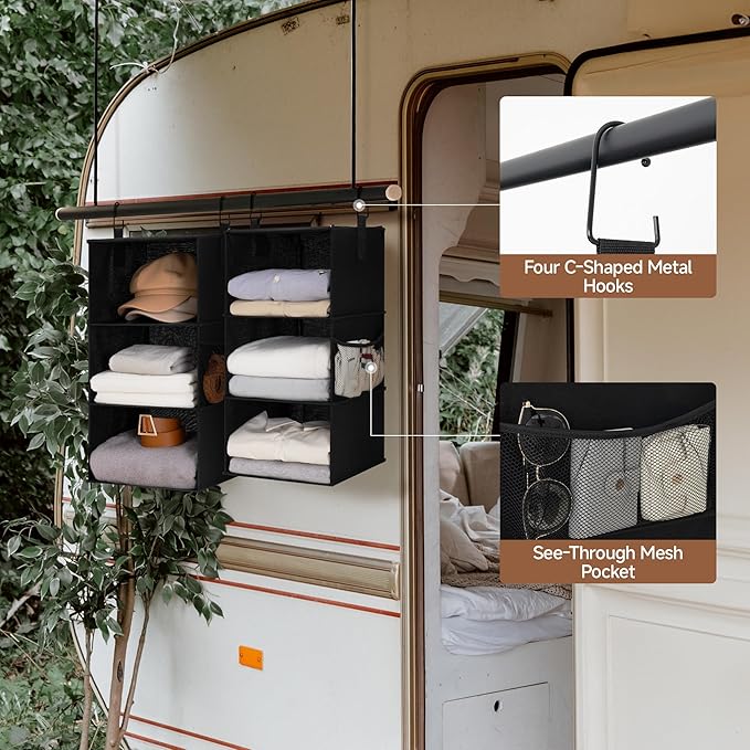 - Versatile hanging clothes organizer for storing sweaters, towels, jeans, pants, t-shirts, handbags, shirts, pants, hats, shoes, and other items in wardrobes, dorms, kids' rooms, trailers, or RVs.