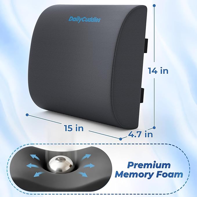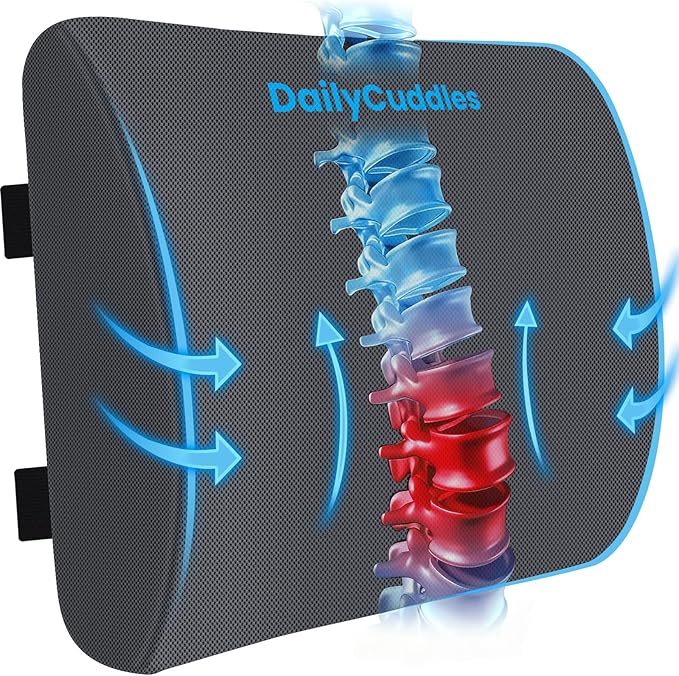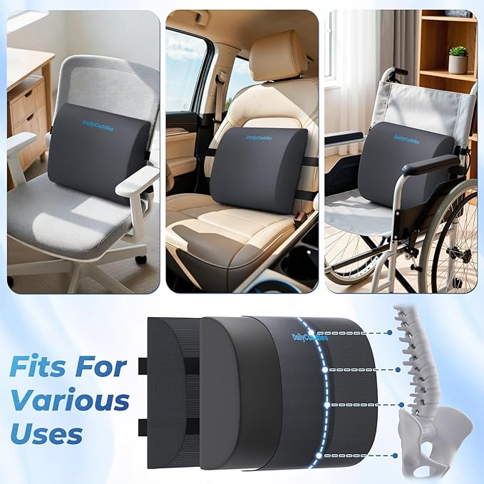 - Ergonomic Design: The DailyCuddles lumbar support pillow for car hugs your waistline and aligns your spine to its "S" shape. The lumbar support for car helps comfort your upper, middle, and lower back during prolonged sitting, bringing all-day pleasure