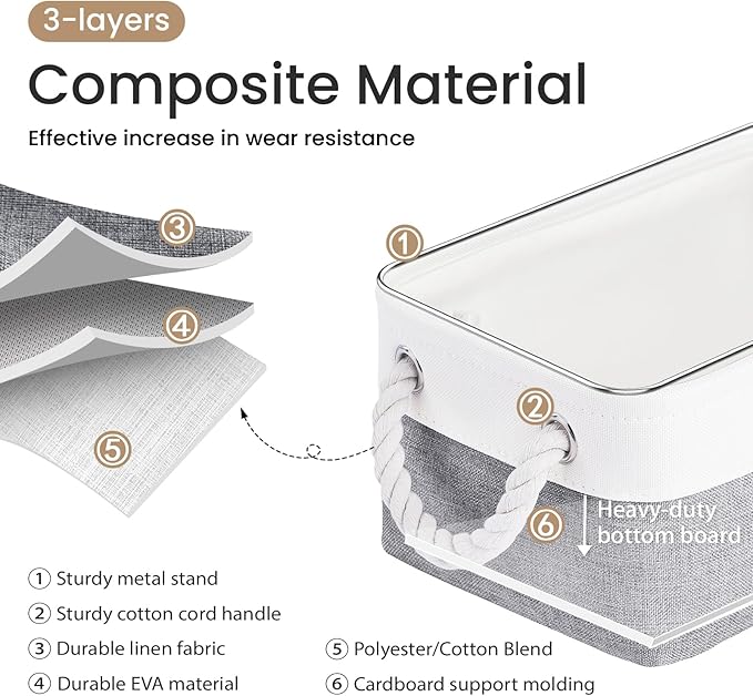 - Sturdy& Structured Design: Crafted with a sturdy EVA base and premium linen fabric, VQRTEXA's 6-pack storage baskets feature a built-in metal frame and reinforced bottom panel. This robust construction ensures strong support and lasting structure for everyday use