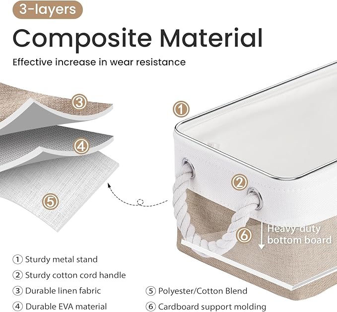 - Sturdy& Structured Design: Crafted with a sturdy EVA base and premium linen fabric, VQRTEXA's 6-pack storage baskets feature a built-in metal frame and reinforced bottom panel. This robust construction ensures strong support and lasting structure for everyday use