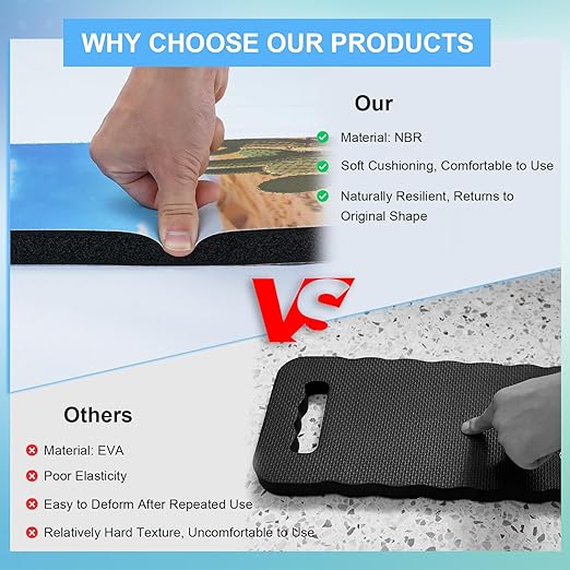 - COMFORT & FADE-RESISTANT: Made from closed-cell NBR foam, the foam kneeling pad effectively cushions and absorbs shock while evenly distributing pressure during kneeling. During frequent daily use, it will not be overly compressed and will bounce back to its original shape, and won't fade
