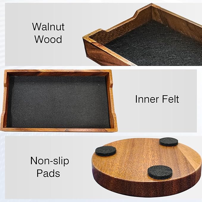 - 【Aesthetic Appeal】Crafted from premium walnut wood, this set harmoniously blends natural grain with soft felt padding, creating a visually attractive addition to your desktop. It's an ideal gift choice that showcases both style and thoughtfulness.