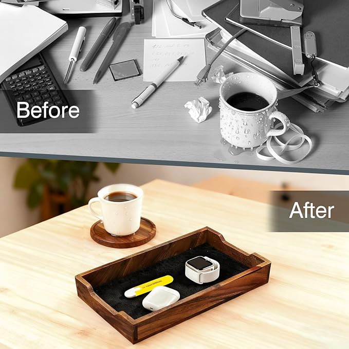 - 【Efficient Organization】The walnut wood desktop tray allows you to neatly store pens, keys, and even your fitness watch, freeing up space and enhancing your productivity.
