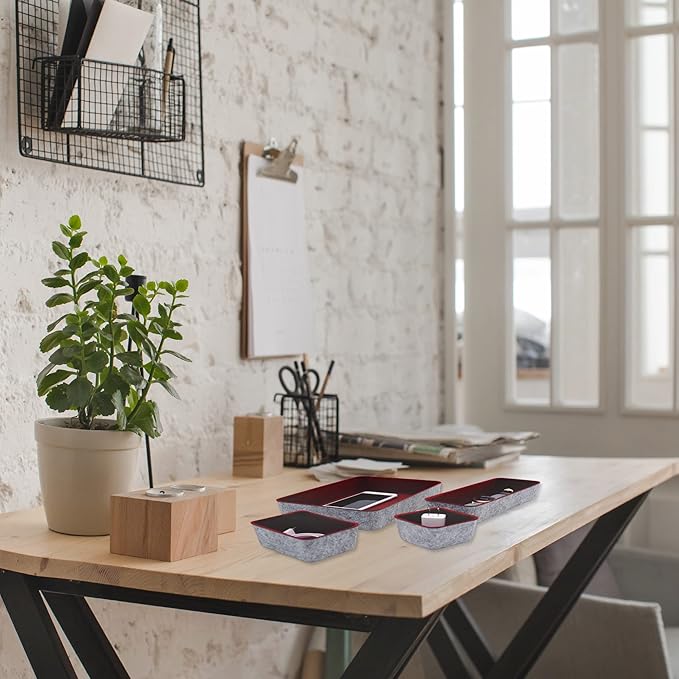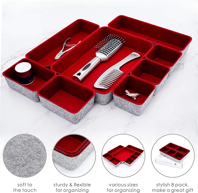 Welaxy Desk Drawer organizers tray Felt storage bins office Sleek Minimalist Lifestyle chic aesthetics room décor for dorm closet decluttering 8-piece (Burgundy)