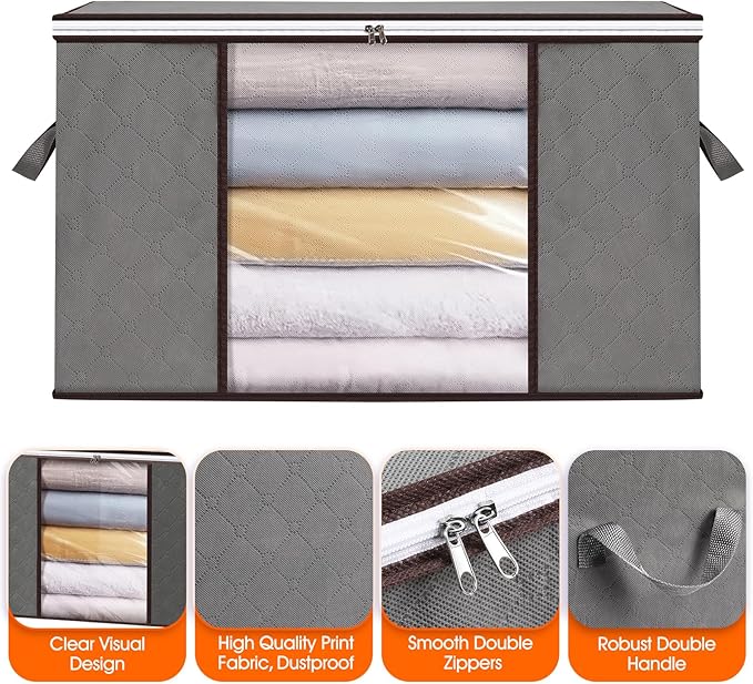 - TRANSPARENT DESIGN: Our clothing storage bins come with a transparent window, allowing you to quickly identify contents without opening the bag. This is a convenient and time-saving solution compared to opaque storage options