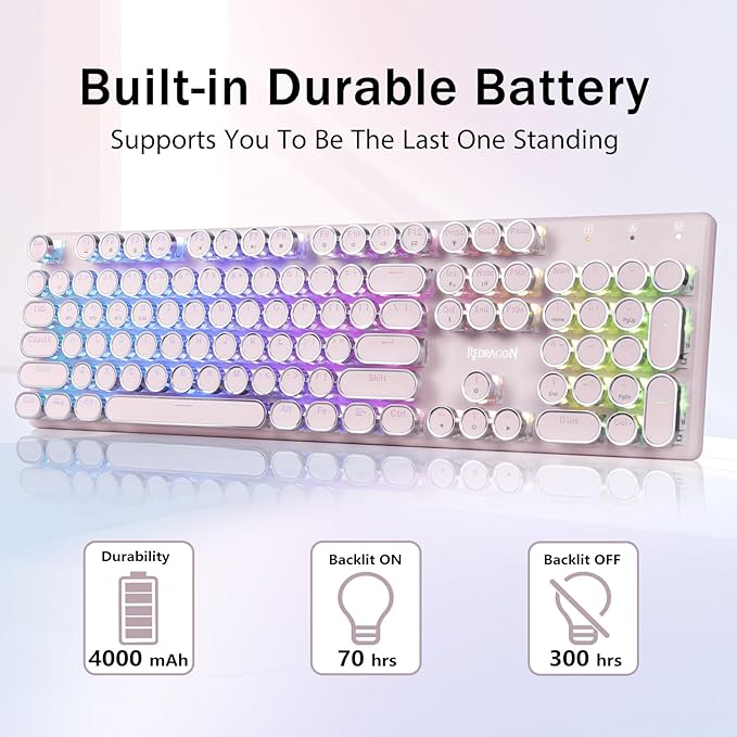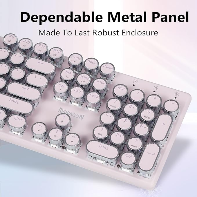 - ๐ฅ๐ฒ๐๐ฟ๐ผ ๐ง๐๐ฝ๐ฒ๐๐ฟ๐ถ๐๐ฒ๐ฟ ๐ฆ๐๐๐น๐ฒ ๐๐ถ๐๐ต ๐ ๐ฒ๐ฐ๐ต๐ฎ๐ป๐ถ๐ฐ๐ฎ๐น ๐๐ฒ๐๐ - Redragon Mechanical blue switches offer medium resistance, audible click sound & tactile feedback, provides responsive and precise gaming environment and performance. Vintage steampunk keyboard round keycaps looks like a classical typewriter, brings you comfortable typing feeling & stable clicking touch.