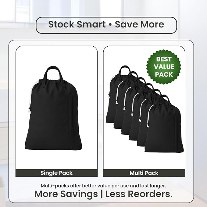 LFH Home Large Premium Cotton Canvas Laundry Bag with Drawstring and Handles Heavy Duty, Multi-Use, and Washable for Home, Travel, College or Storage 28x40 (Pack of 2)-Black