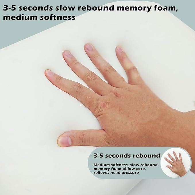 - Comfortable Slow-Rebound Support——100% polyurethane memory foam core with medium firmness adapts to your head and neck contours, providing optimal support for side/back sleepers. Slow-rebound technology evenly distributes pressure for zero discomfort during outdoor adventures or home use.