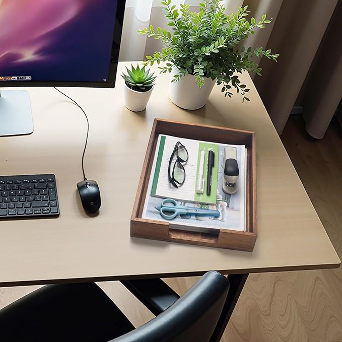 - Multifunctional Tray: The wooden tray not only to be used as desk tray to storage mail, papers, letters, documents, magazines, folders but also to be entryway tray, bedside table tray, nightstand tray.