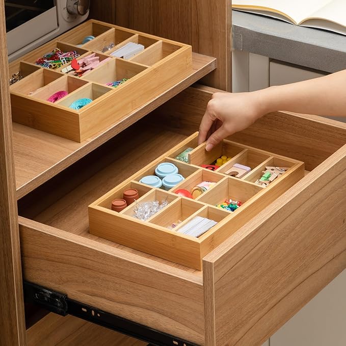 - Durable Material and Long-Lasting: This bamboo wood drawer organizer adopts a pull-out compartment structure, which is more durable than other plastic drawer organizers, and it is easy to clean and will not accumulate dust. The smooth surface has no burrs to avoid hurting your hands