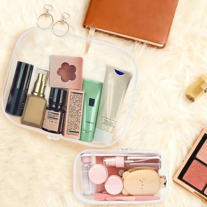 Clear Hard Shell Zipper Case,Clear Toy Storage Pouch,Waterproof Transparent Organizer Cosmetic Case for Travel, Office, Home (White, 3*M)