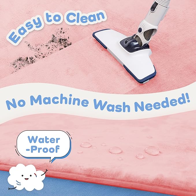 - Easy-to-Clean Velvet Surface: The soft velvet surface of this padded play mat for baby is waterproof and wipeable. Just vacuum or spot-clean milk, dirt, or spills, keeping your baby play mat fresh for everyday use.