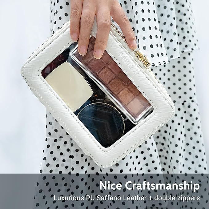 - ❤【PREMIUM PU LEATHER MAKEUP ORGANIZER】Unlike flimsy PVC bags, our structured cosmetic case is made with saffiano PU leather and thick vinyl. Beautiful stitching and whisper-quiet metal zippers ensure these travel makeup bags offer durable, long-lasting performance.