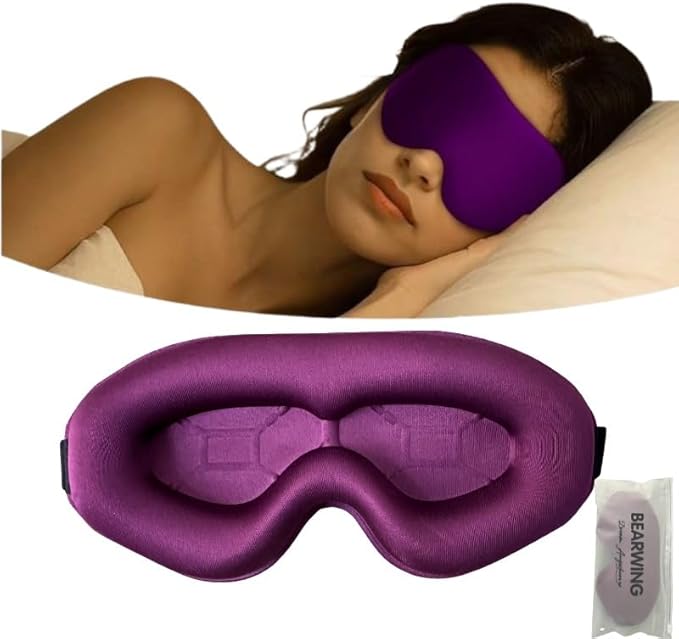 BEARWING 100% Light Blocking Sleep Mask with Storage Bag, Only 0.73oz Light Comfortable 3D Contoured Memory Foam, Blink Freely Eye Masks for Sleep, Travel, Nap, for Women, Purple