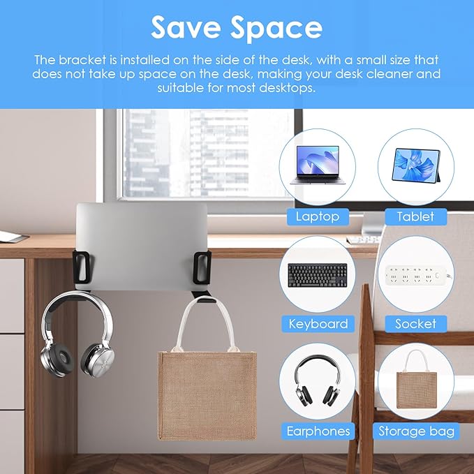 - Space Saving : The stand is installed on the side of the desk , and the size is small , which does not take up space on the desk , making your desk tidy and suitable for most desktops . The effective depth of the desktop must be greater than 4.25cm and the thickness must be less than 5cm