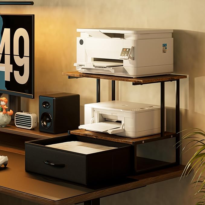 - Space-Saving Design for Your Workspace: This sleek multi-tier printer shelf is designed to maximize your desk area. Perfect as a printer stand for desk or home printer stand, its open layout keeps printers and office supplies organized and within reach, freeing up valuable space for a cleaner, more productive home office.