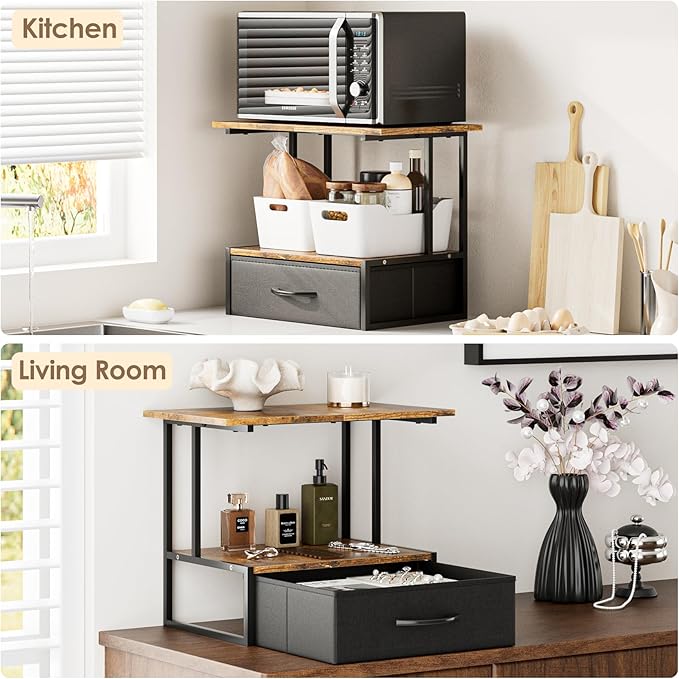 Masupu Printer Stand for Desk, Printer Table with Fabric Storage Drawer, 2 Tier Desktop Shelf, Multi-Purpose Desk Organizer for Home Office, 3D Printer, Fax Machine, Scanner, Rustic Brown