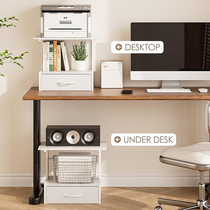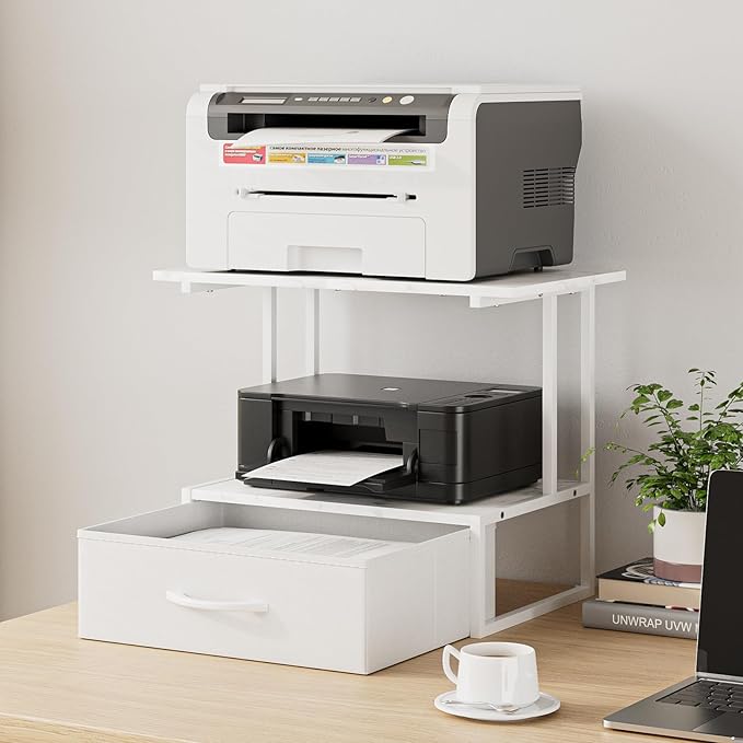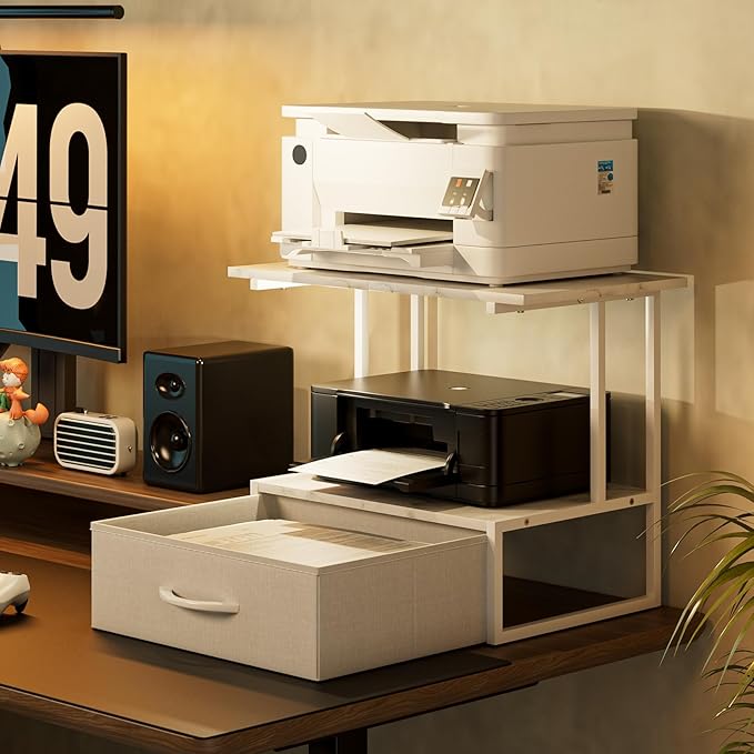- Space-Saving Design for Your Workspace: This sleek multi-tier printer shelf is designed to maximize your desk area. Perfect as a printer stand for desk or home printer stand, its open layout keeps printers and office supplies organized and within reach, freeing up valuable space for a cleaner, more productive home office.