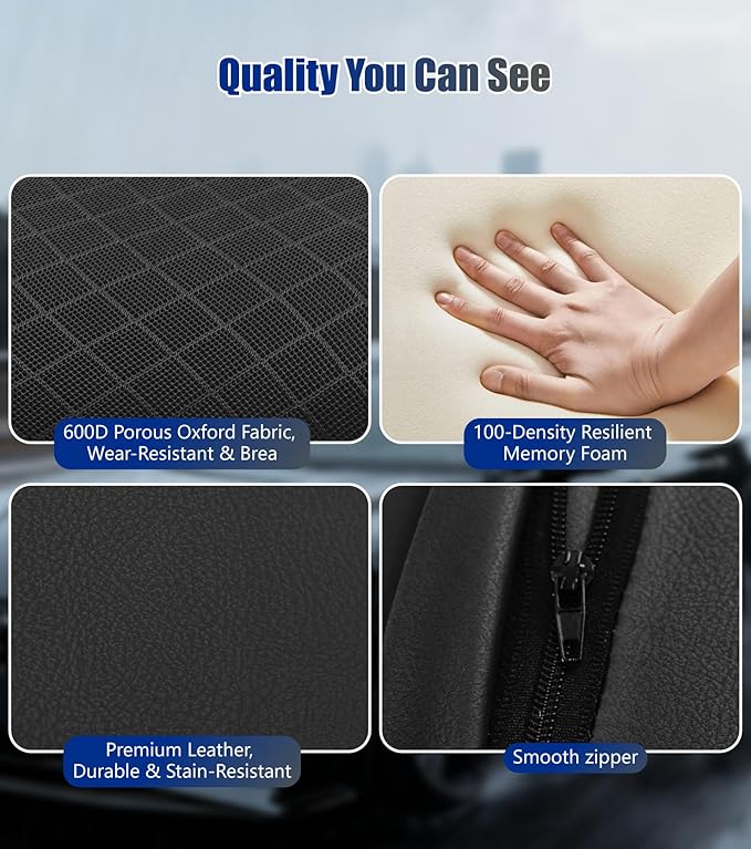 - 【PREMIUM MATERIAL】 You'll love our car neck pillow for driving, filled with 100% memory foam for soft and resilient support. The cover combines 600D Oxford fabric and premium leather for comfort and durability, providing excellent support for your neck and head to ensure a safer, more comfortable driving experience.